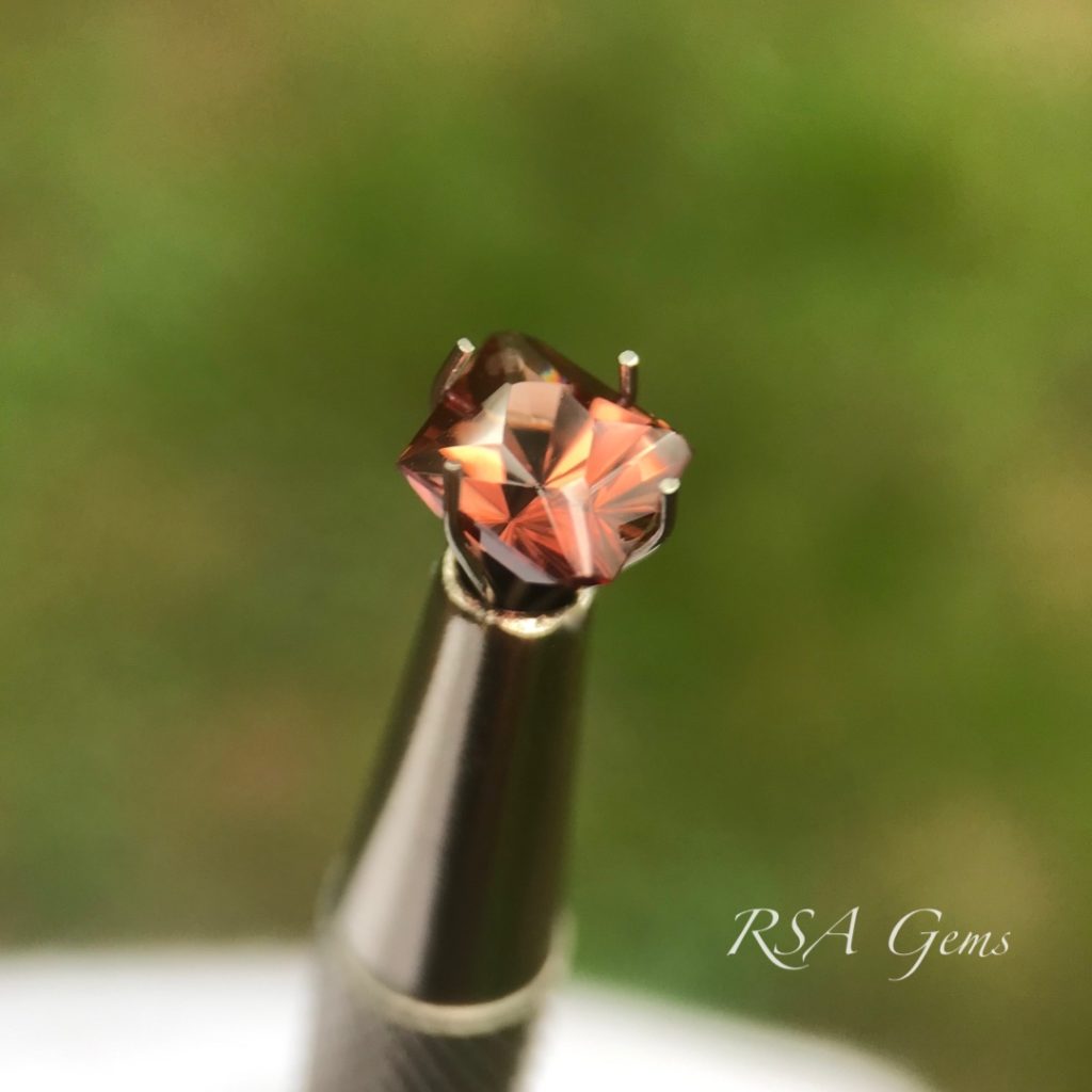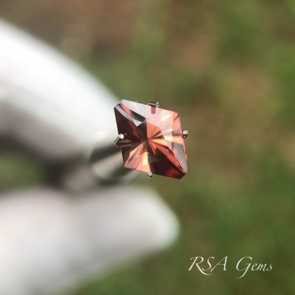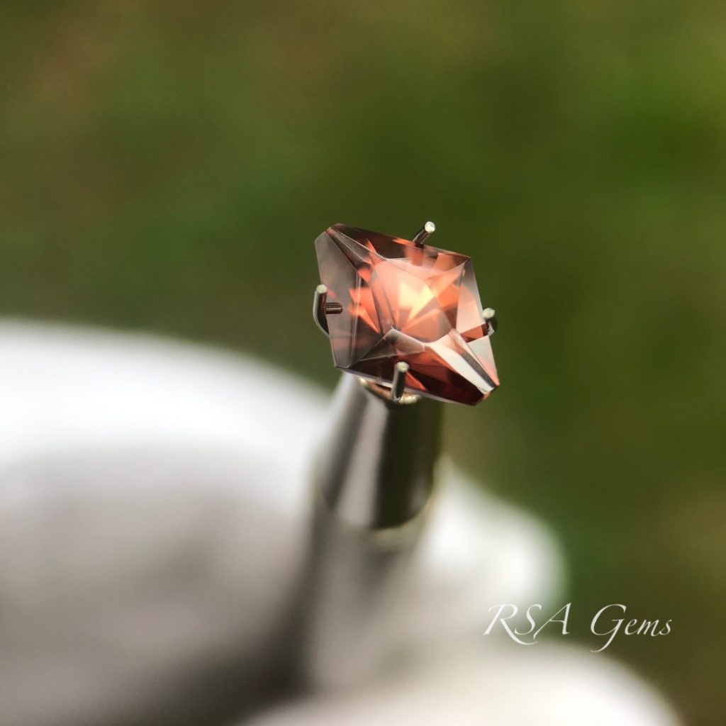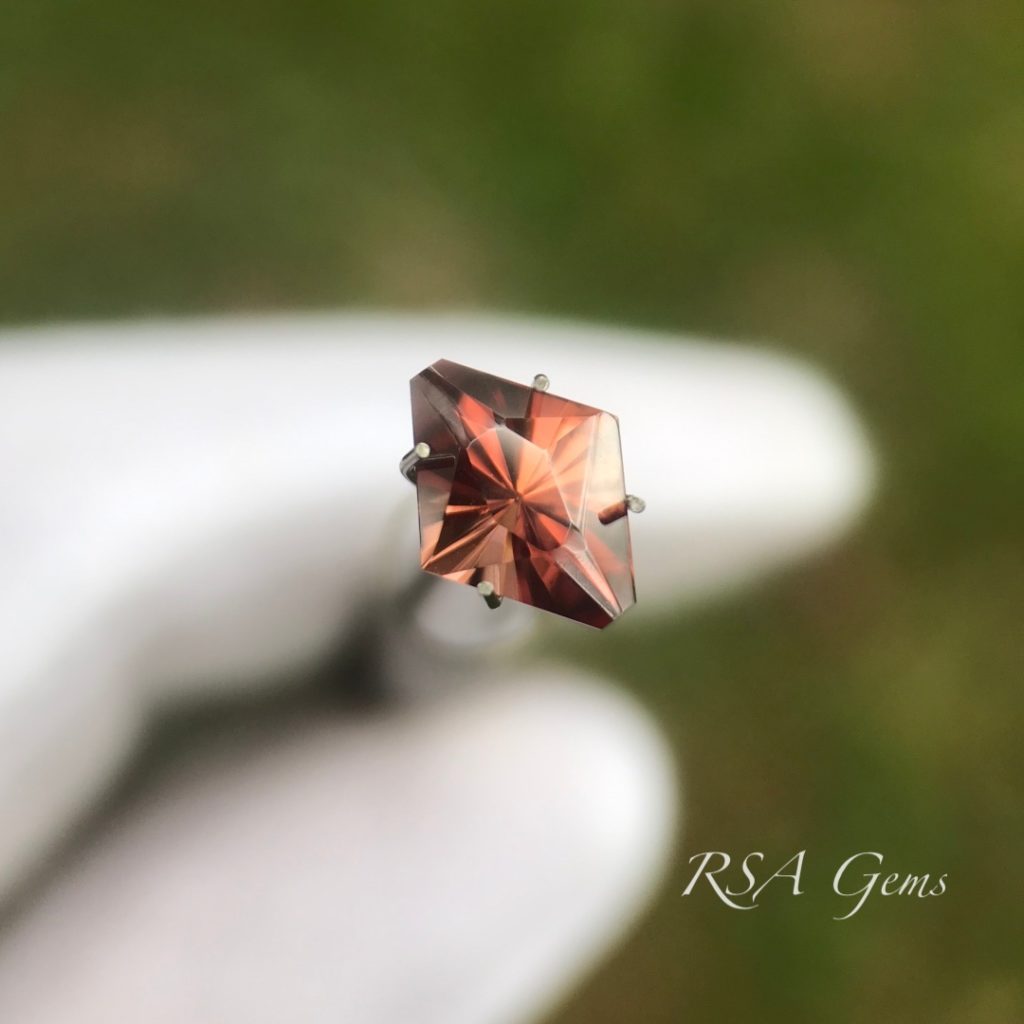 This brown zircon from Africa was cut in a truncated diamond shape.