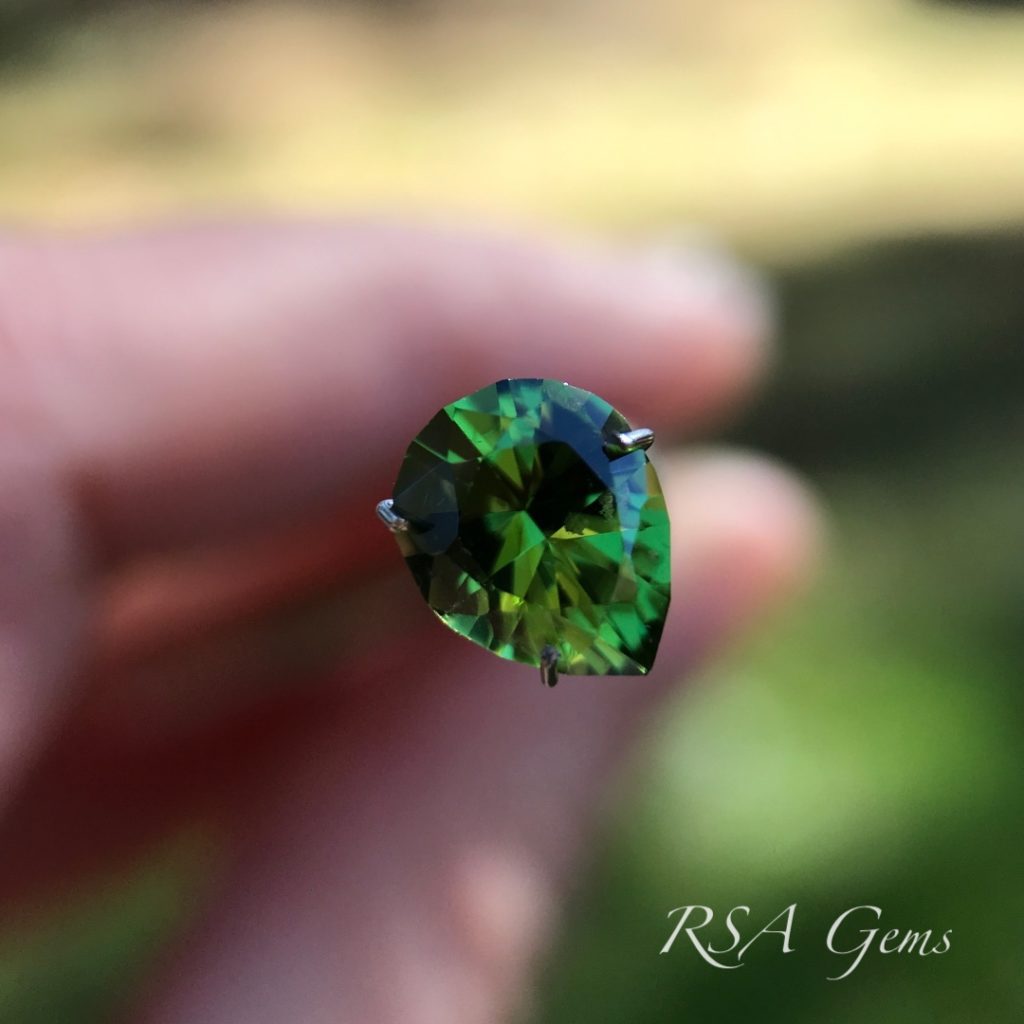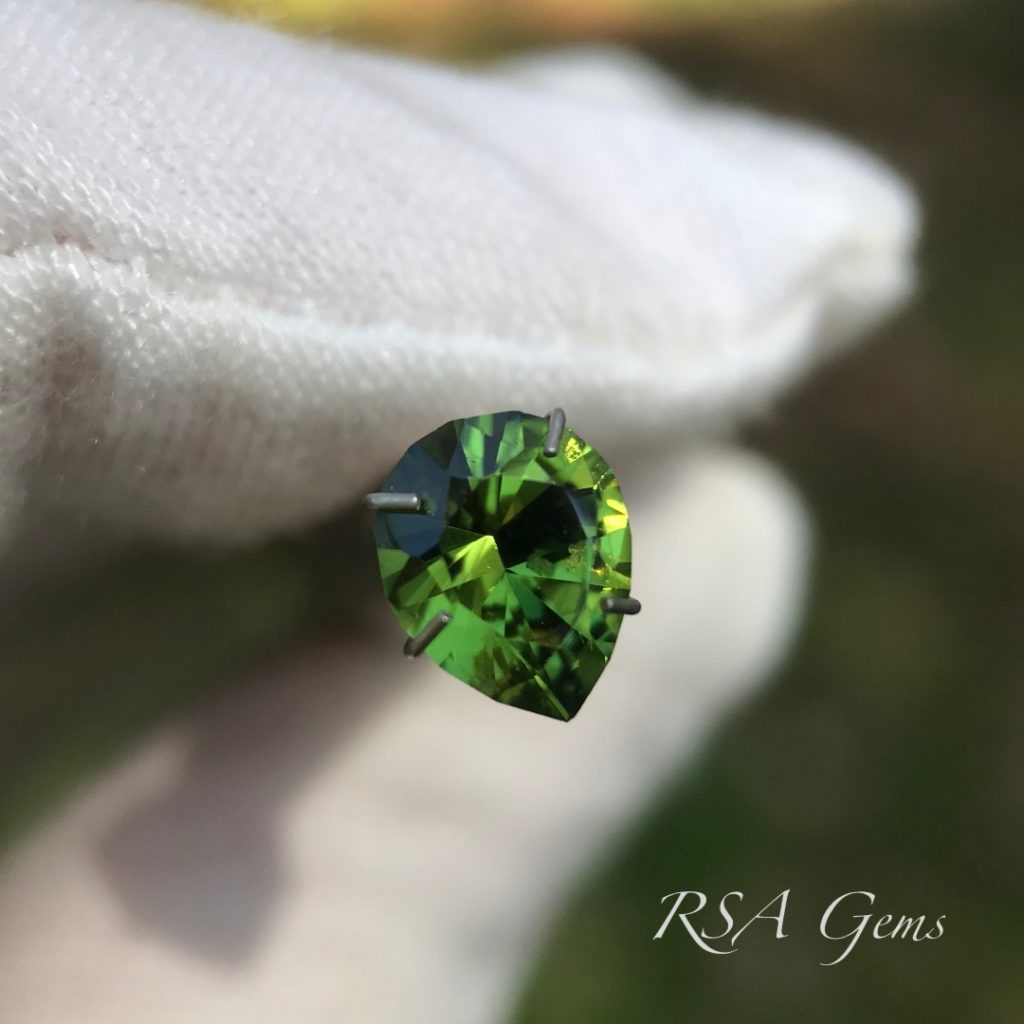 A very bright chrome tourmaline from Tanzania cut in a pear design.
