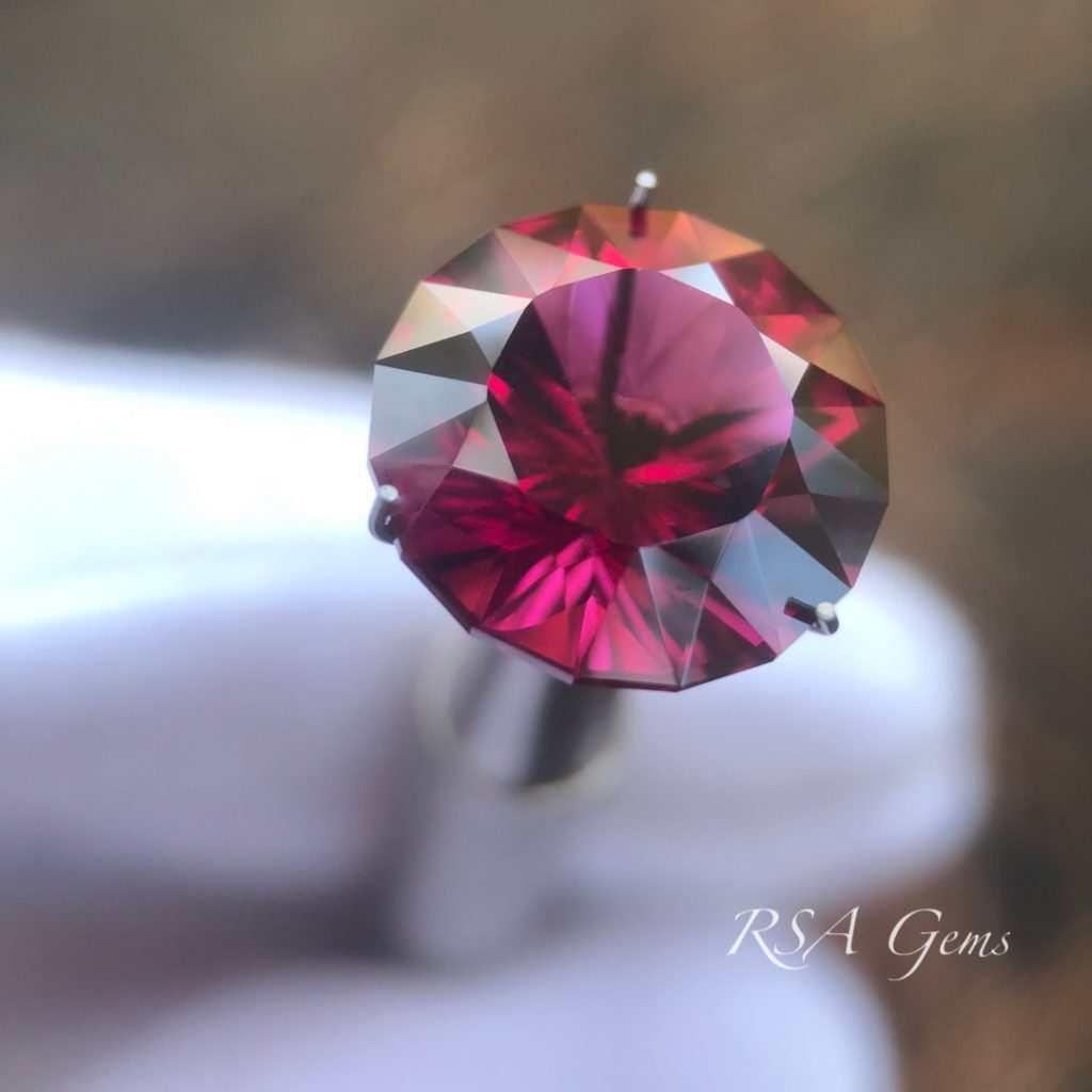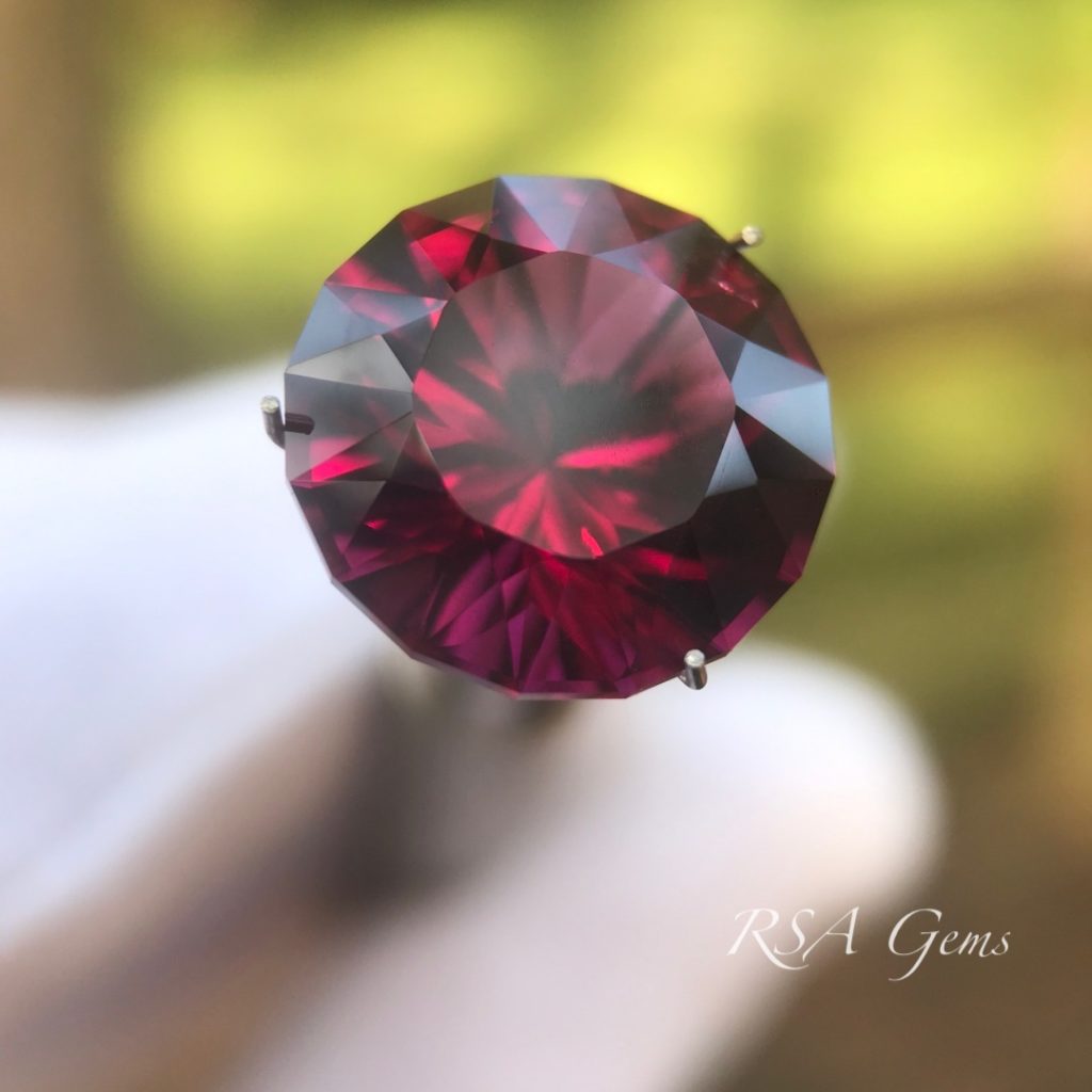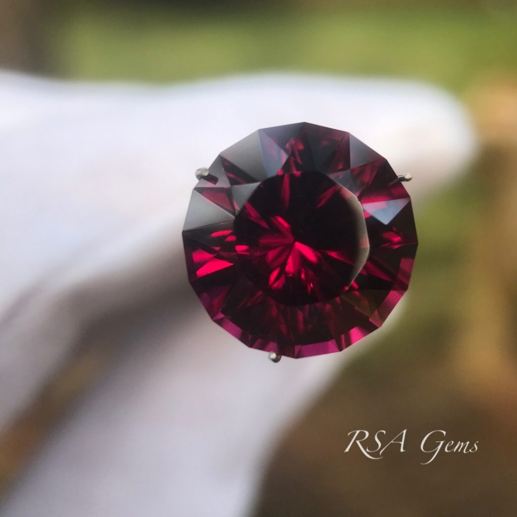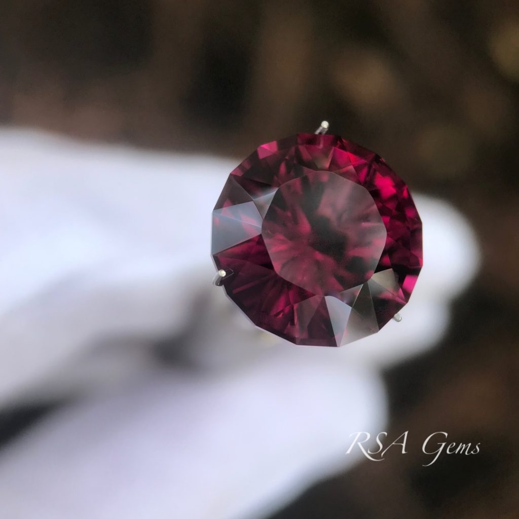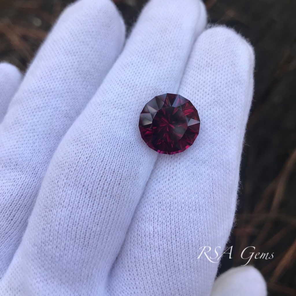 This purple garnet in brilliant round cut with concave facets on the pavilion came out a little more red than expected, but there are purple highlights throughout the stones as per the photos.