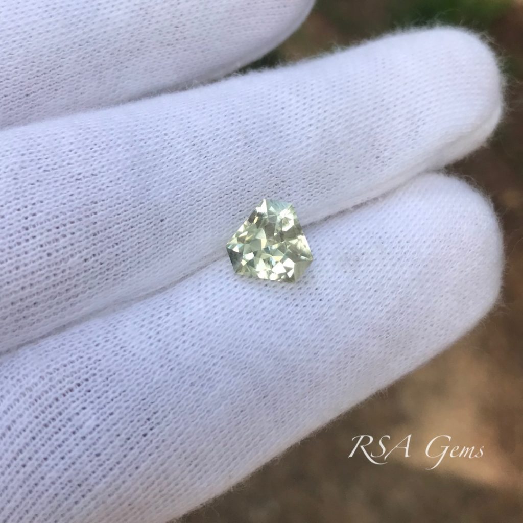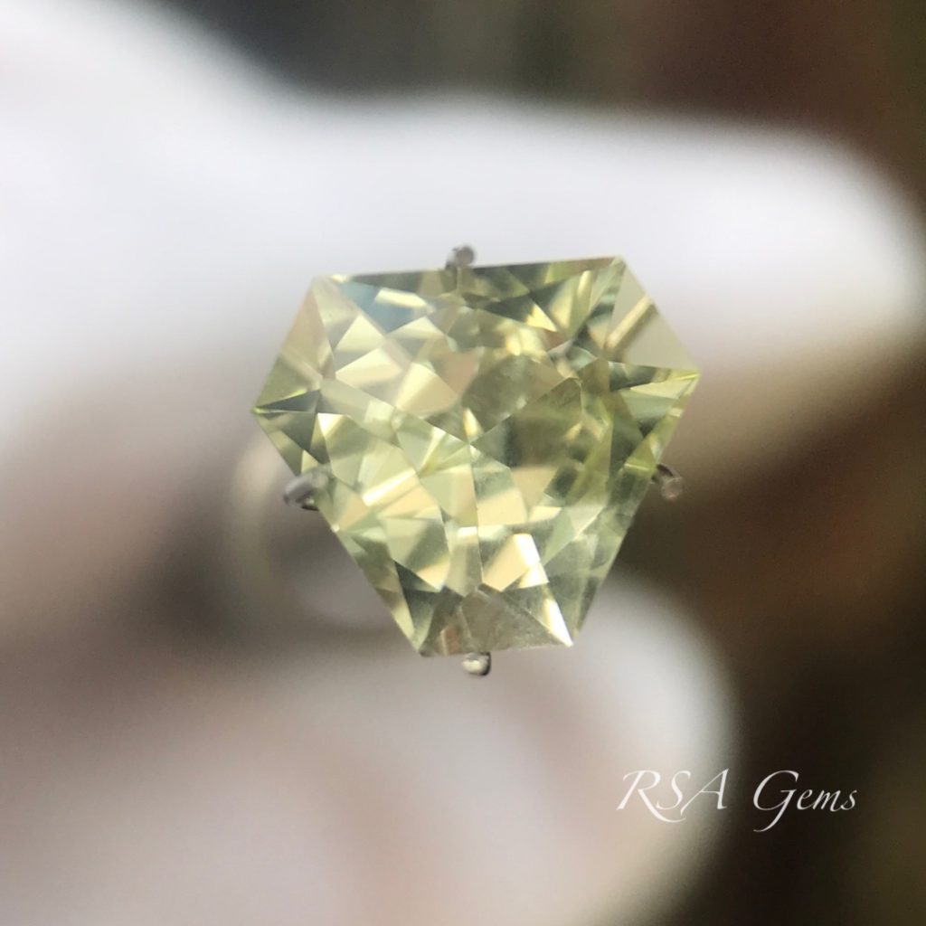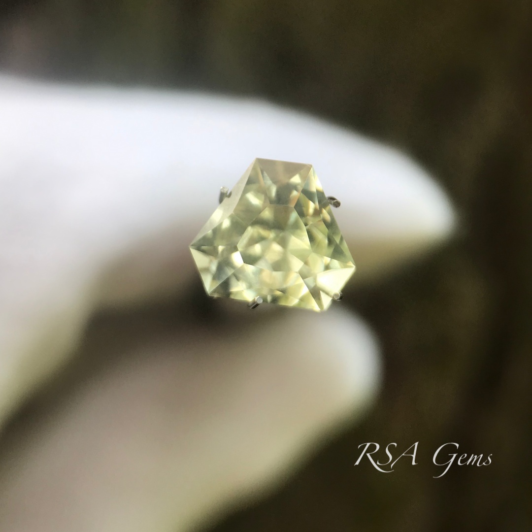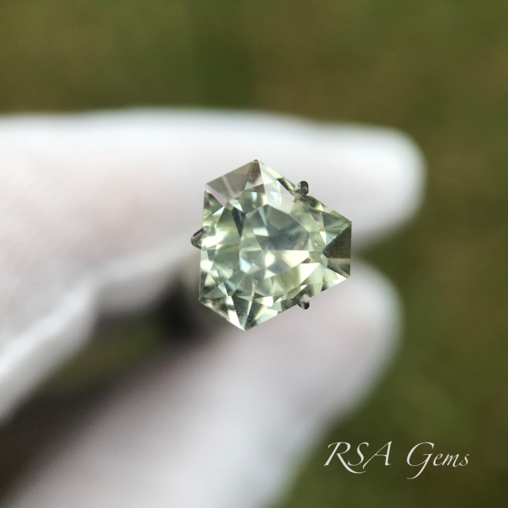 Small heliodor triangle with nice bright golden reflections. The rough for this stone came from Nigeria.