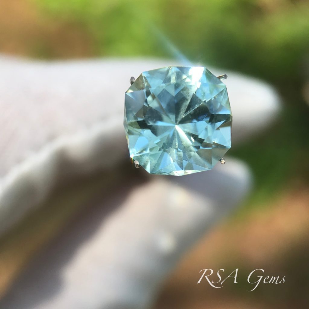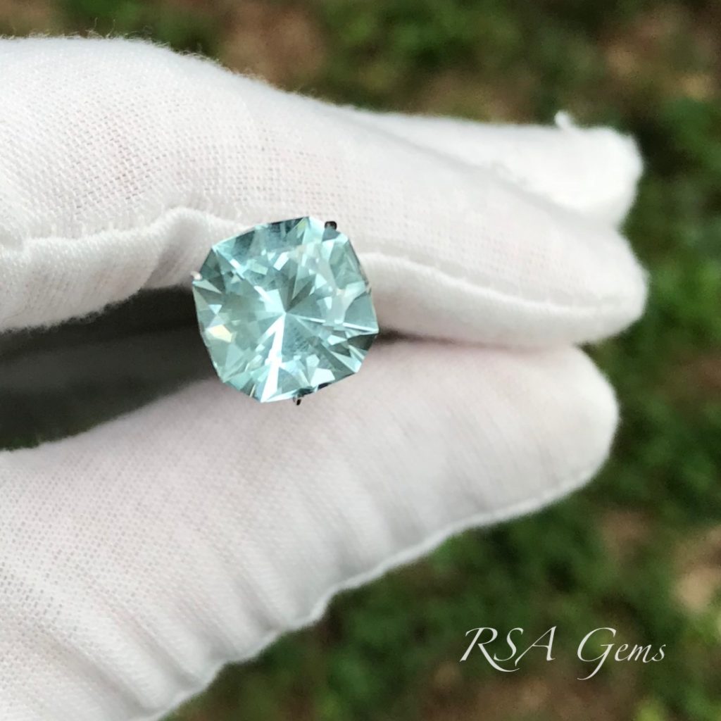 This light blue tourmaline from Afghanistan looks very much like a Paraiba, but it is not. This stone does not have copper in it like paraiba tourmaline does. Still, a beautiful stone in an unusual color for tourmaline.