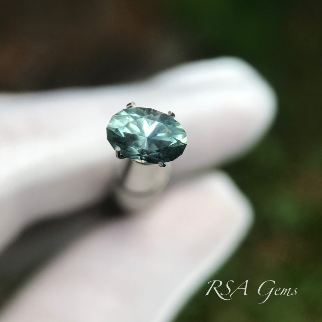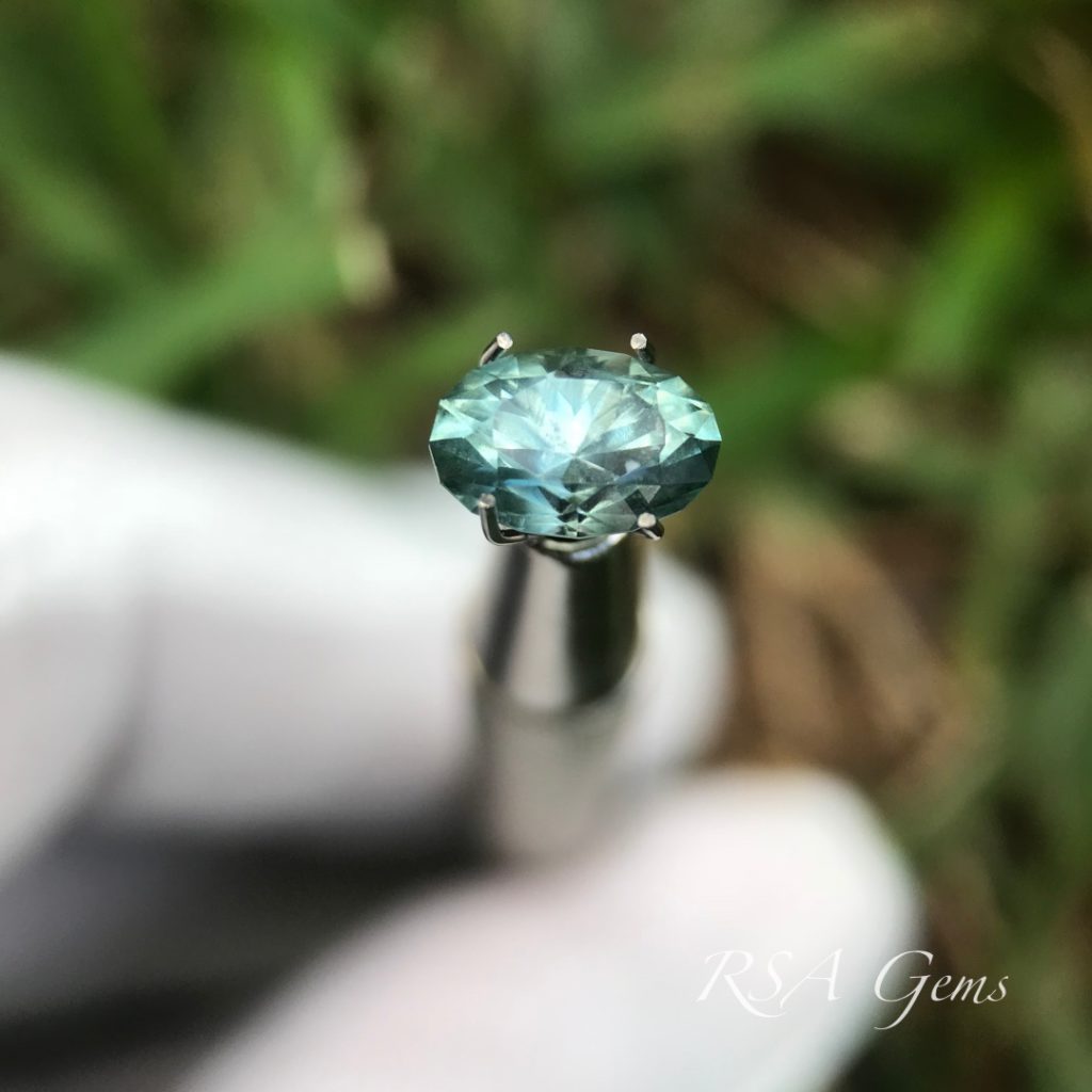 This is unheated, untreated Missouri River sapphire and came from the miner directly to us. Cut in a brilliant oval design, you won’t see a fisheye or window in this one!
