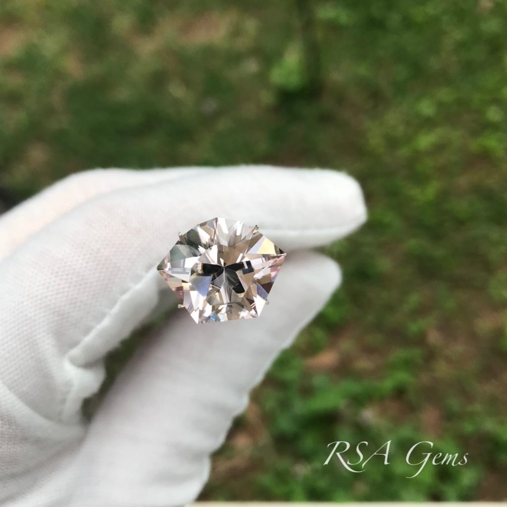 On October 7th, 1989, one of the largest specimens of Morganite was discovered in Buckfield, Maine. This gem measured 30cm wide and featured a pinkish-orange color. The 50 pound morganite was eventually separated into smaller pieces with the larger portion acquiring the name “The Rose of Maine,” which now resides in Harvard’s mineral museum.