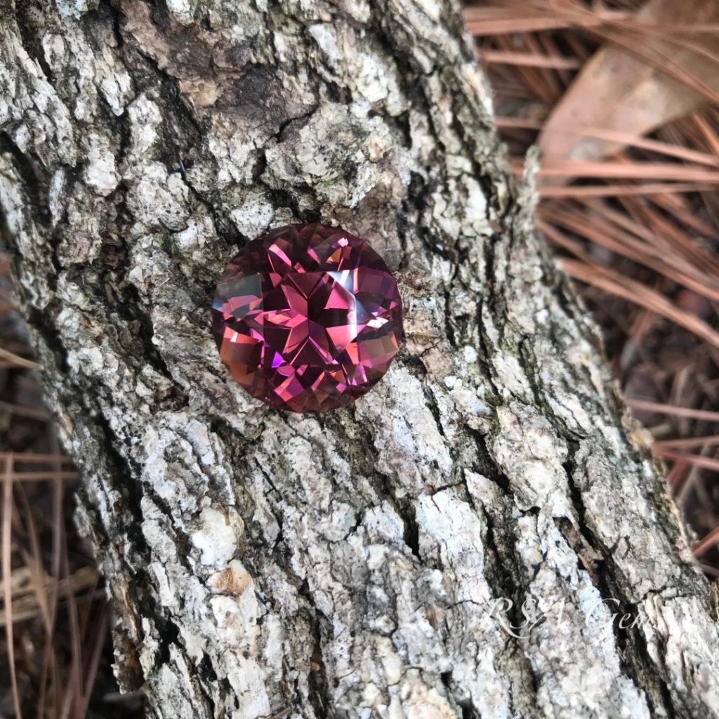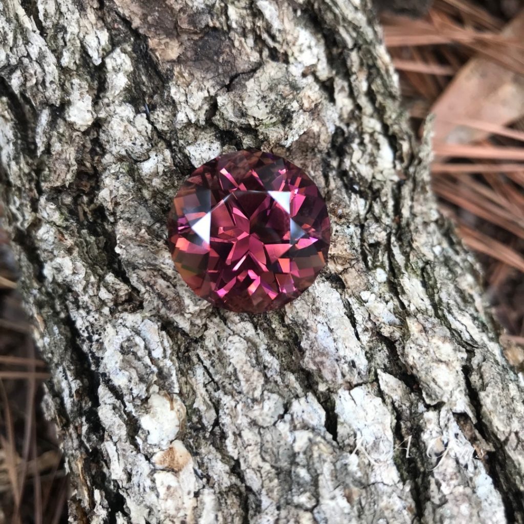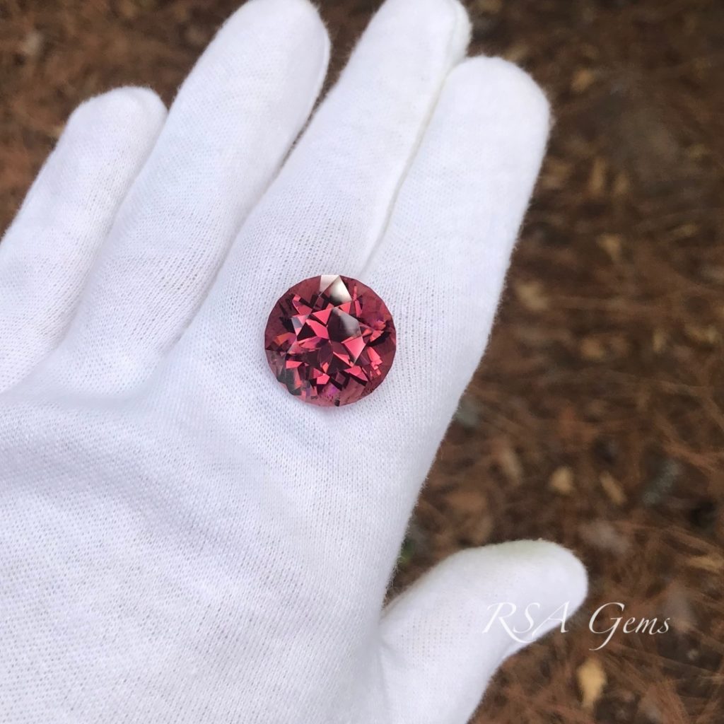 The museum quality precision cut pink tourmaline was designed and cut by Loren Brown in an original design. The cut is interesting because it has six-fold symmetry on the pavilion and eight-fold symmetry on the crown.