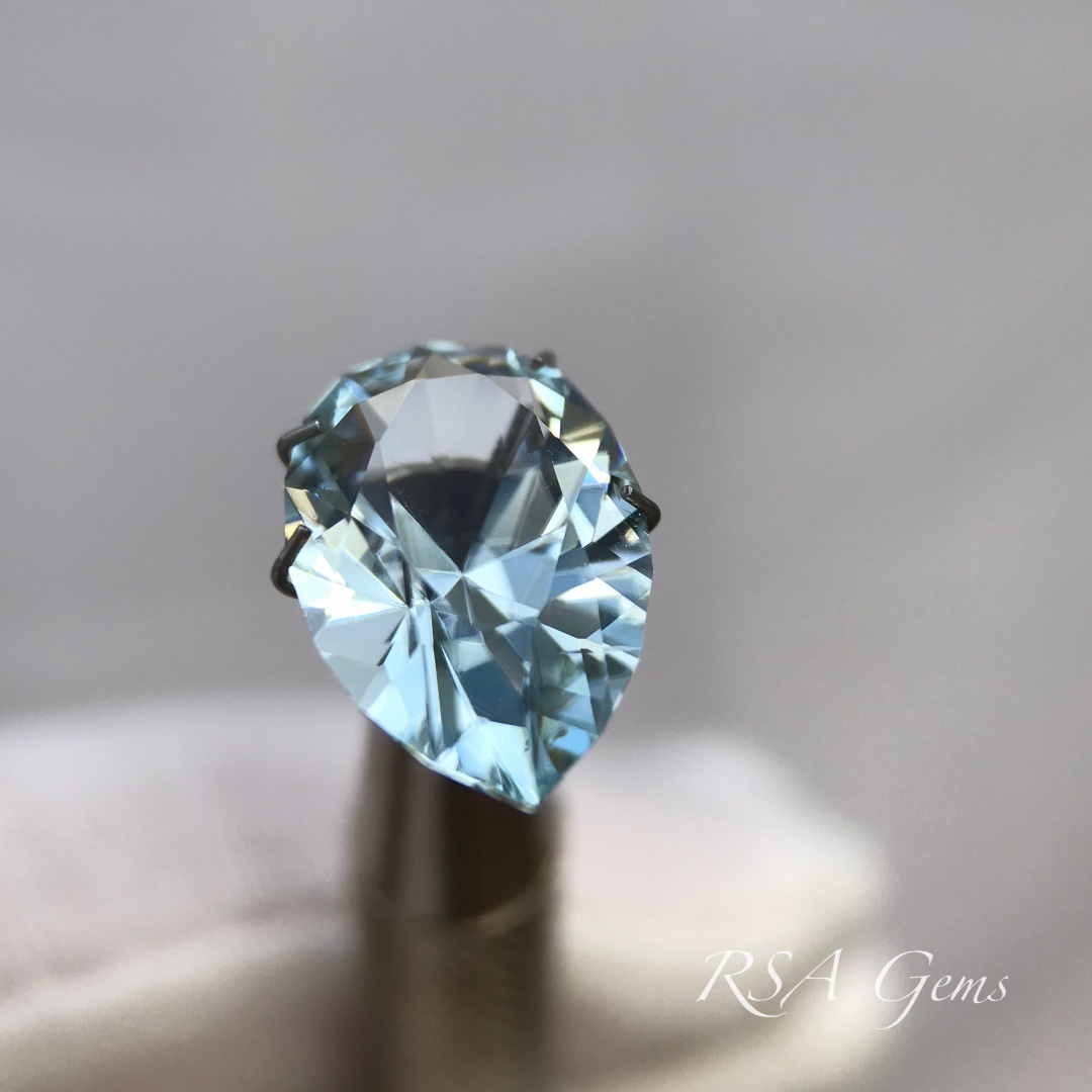 This is a 3.92 carat sky blue aquamarine from Brazil in a pear cut.