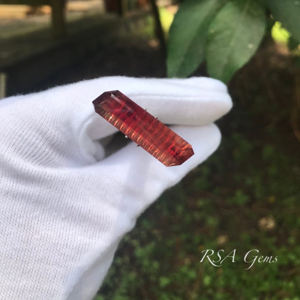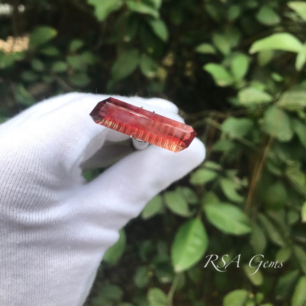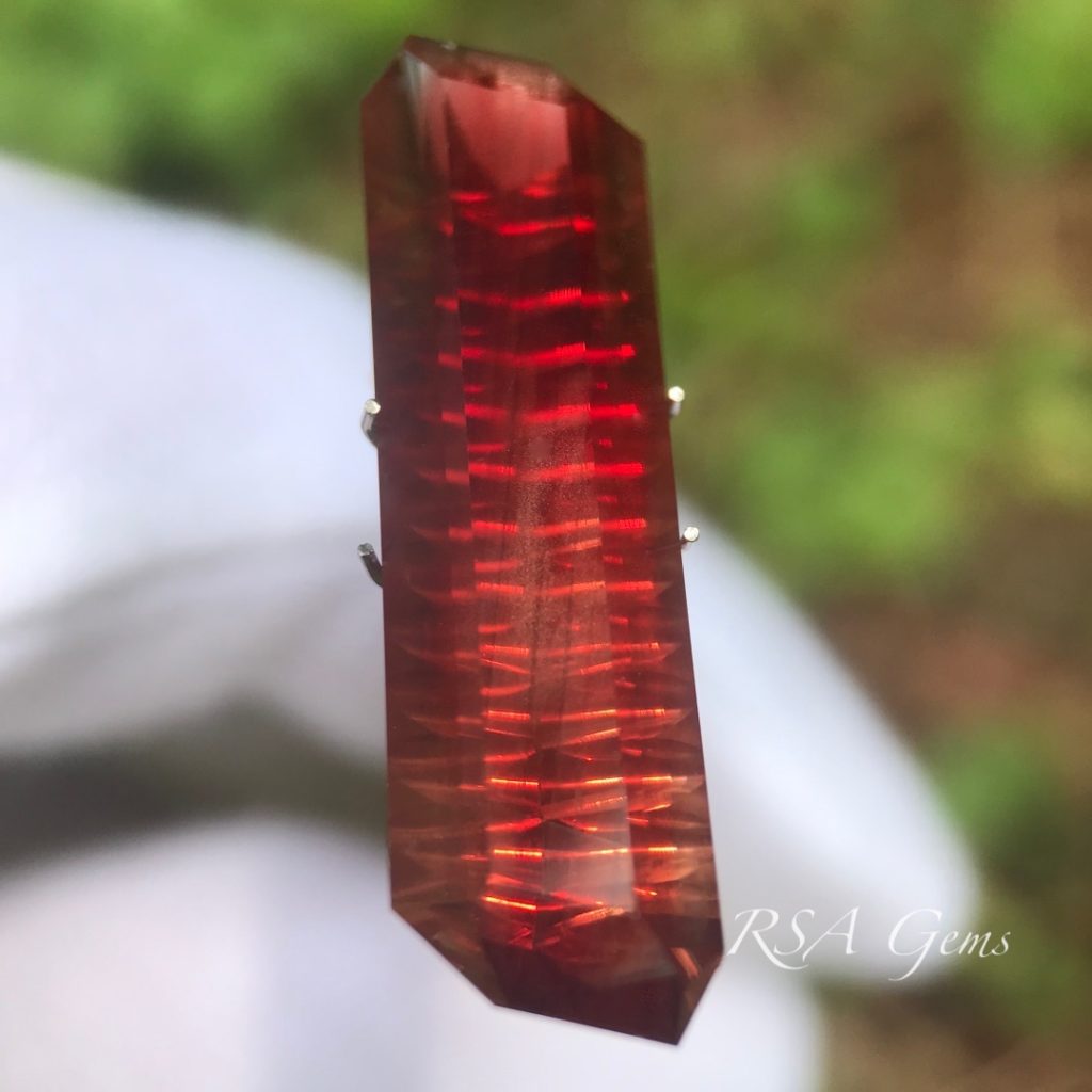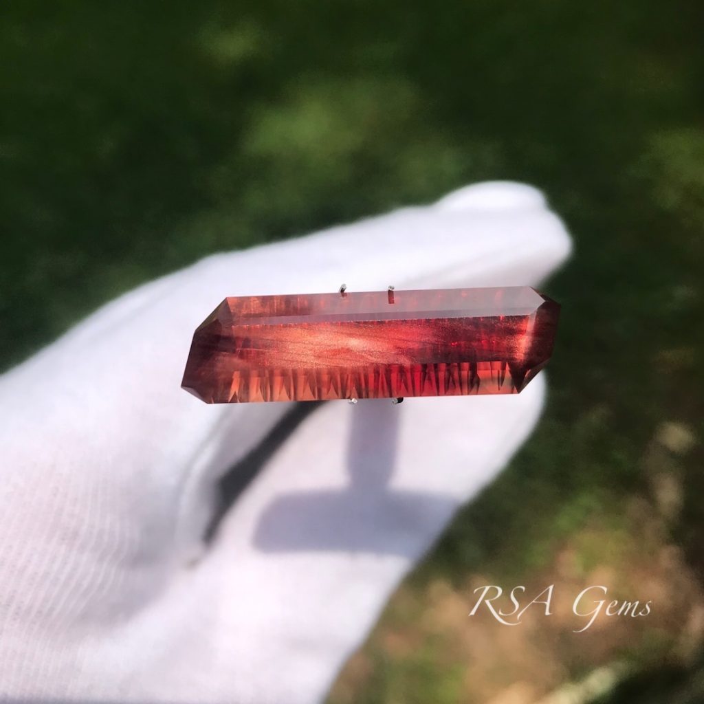 Our first fantasy cut stone! This Oregon sunstone came from the Double Eagle mine in Oregon. While it does have a large swath of schiller under the table, this one shines with red and orange tiger stripes. This would make a great pendant.